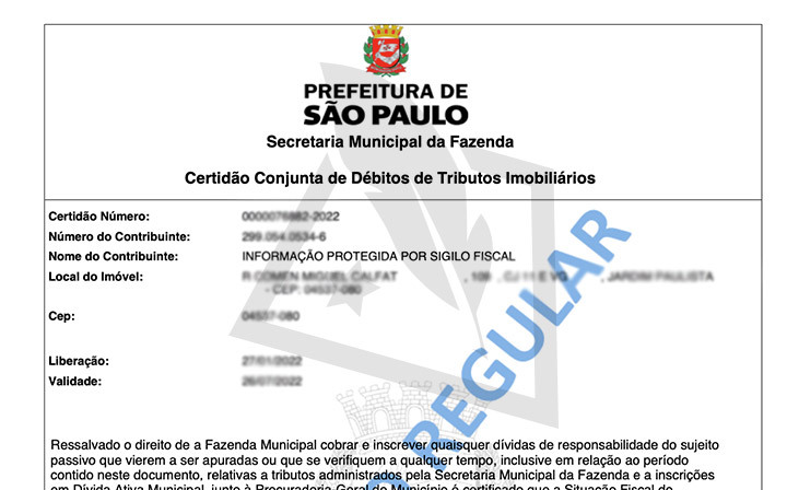 As certidões de IPTU são documentos gerados pelo poder público com informações sobre a situação legal de um imóvel. Mais uma vez, os tipos de certidões variam de município para município, entretanto as informações mais comuns que podem ser obtidas através de certidões de IPTU são: