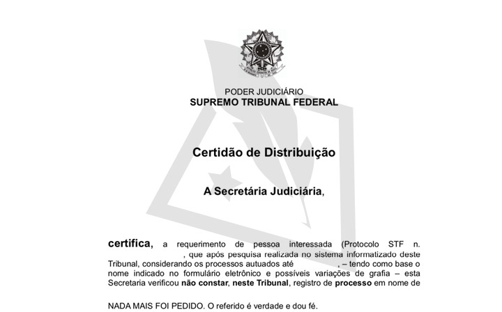 Trata-se de um documento com validade legal sobre a apuração de informações processuais sobre um indivíduo ou empresa. E não pode ser conhecida ou intitulada como nada consta ou como certidão negativa, ela atesta a existência de processos e é emitida pelo Supremo Tribunal Federal.