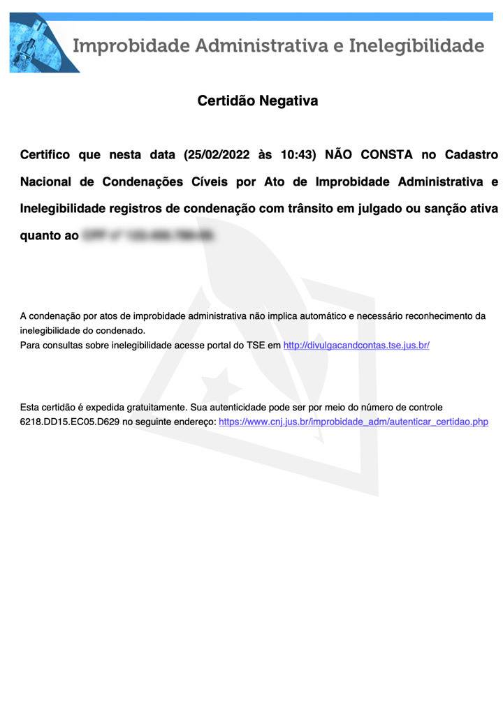 Certidão Negativa do CNIA/CNJ